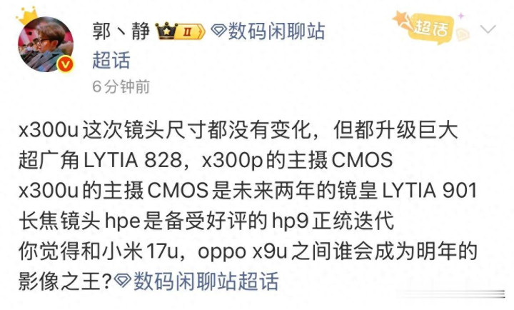 未来一年,是vivo X300 Ultra凭借LYTIA 901和HPE的组合确立优势,还是小米17 Ultra的连续光变或OPPO Find X9 Ultra的均衡体验更能打动用户?答案要等真机发布后,由实际样片来决定。